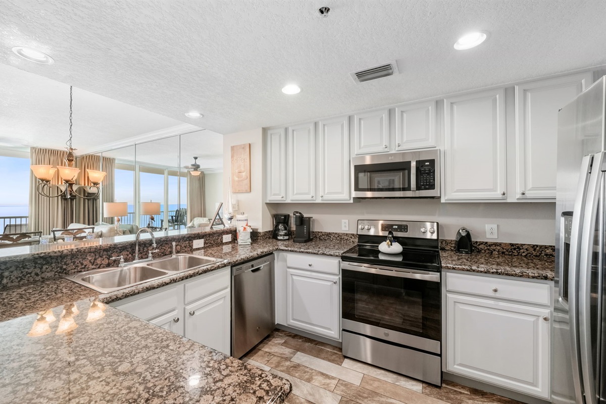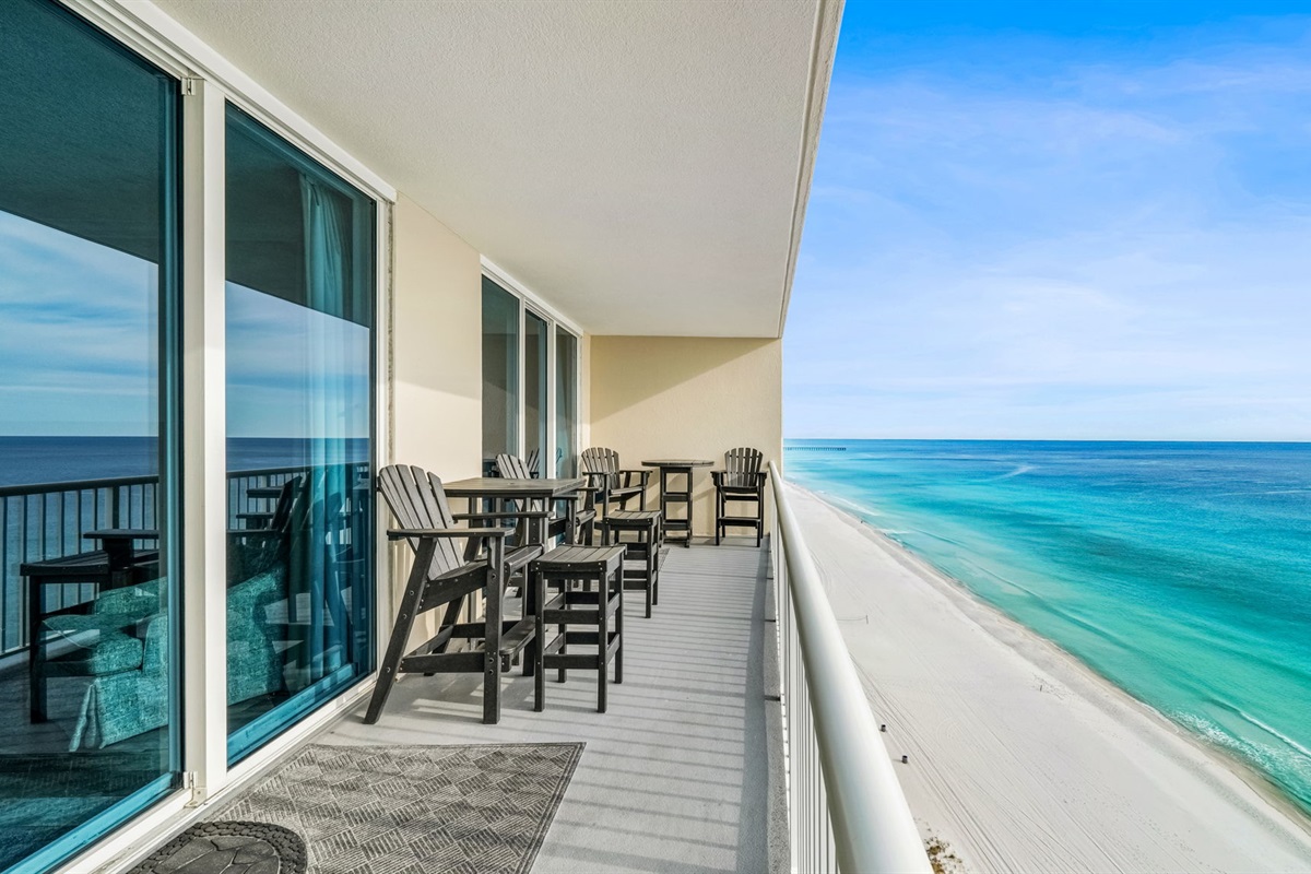 Palazzo offers one of the finest settings of any beachfront condo development in the area. Located on the quieter west end of Panama City Beach. Our beautifully updated condo on the 11th floor (#1107) offers everything you could need for a relaxing beach vacation including 3 full bedrooms, 3 full bathrooms, queen sofa sleeper, full size laundry, fully stocked kitchen, huge balcony and a private ambiance that can't be rivaled. Palazzo features an elevated beach front pool and gated parking underneath the building.