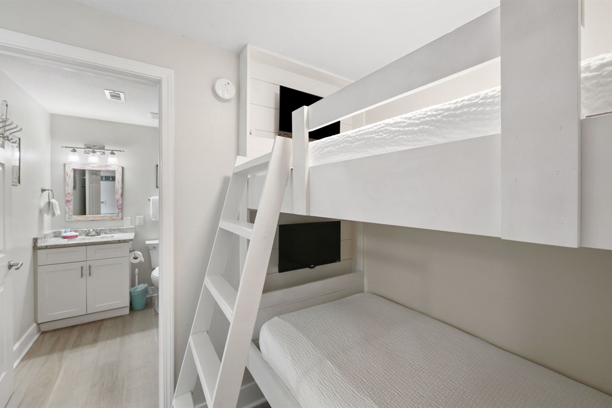 This gorgeous one-bedroom with bunkroom has been recently updated throughout and beautifully decorated in elegant tones of cream and white, this gulf-front condo on the 10th floor (#1009) of Tidewater Beach Resort will bring an extra dose of elegance to your Panama City Beach getaway. You'll be treated to a spacious balcony overlooking the water, a lovely kitchen with stainless steel appliances. The spacious gulf front master bedroom has balcony access and gorgeous gulf views. The bunkroom is perfect for the kids with access to the full bath and laundry. While the condo is perfect for a romantic getaway, business traveler or family of four, there is also a pull out sofa to sleep up to 4 adults. We please ask that there are children only on the twin bunks.