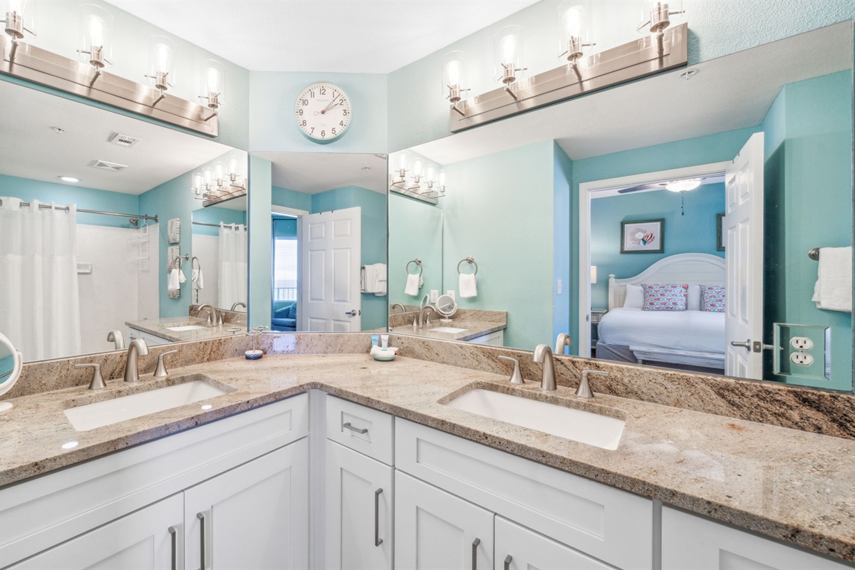 Tidewater #217 (2nd floor!) is a gorgeous, coastal beachfront condo perfectly situated with the most stunning views of Panama City's famous white beaches and offers Complimentary beach chair service, seasonally at a savings of $70 per day! This unit is on the second floor, which is the floor you walk into from the parking garage from the skywalk, so you can avoid the elevator! A fully stocked kitchen with updated appliances, granite countertops and all the basic cookware essentials you could need, washer and dryer, and a dining table that seats 6 along with 4 barstools for the kids! The living room has ample seating for the entire family and shares those gorgeous Gulf views we all love. Sliding doors open up to the amazing wrap around balcony where you can relax or watch the family having a blast in the outdoor pool.