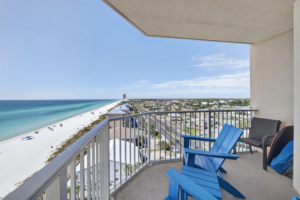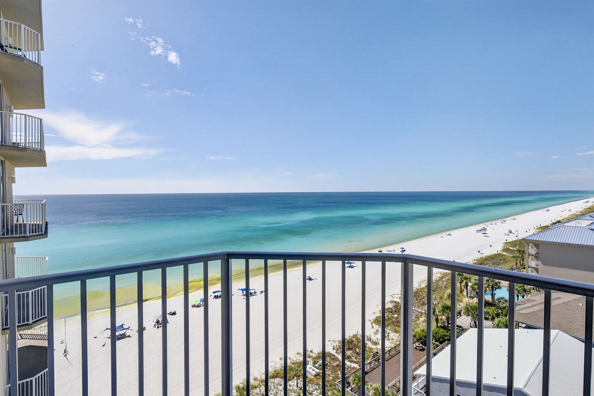 Beautiful, panoramic Gulf of Mexico views from this 2 bedroom, corner condo, offering an idyllic retreat for beach enthusiasts, families, and anyone looking to relax on Panama City Beach's pristine white sands. Enjoy the multiple pools, a seasonal tiki bar, rejuvenating hot tubs, a cinematic experience at the on-site theater, arcade fun, and access to a 4,300-square-foot gym complete with a Roman spa.